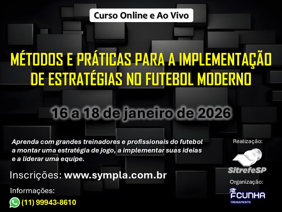 CURSO ESTRATÉGIAS PARA O TREINADOR DE FUTEBOL Posted on 05/07/2025 by fcfutebol Acesse: https://www.sympla.com.br/evento-online/estrategias-para-o-treinador-de-futebol/2915694